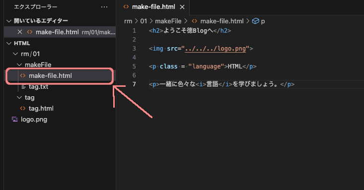 このように、開くとファイルの内容をタグとして読み込むファイルのことをhtmlファイルと言います。