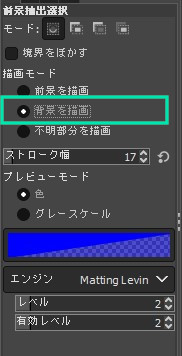 チェック入れた場所により、なぞったところを「前景」「背景」「不明」の3つに変更します。