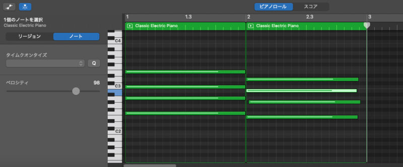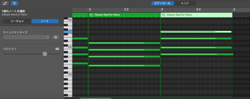 こちらを1小節にまとめたいため、動かして小節の終わりに合わせます。
