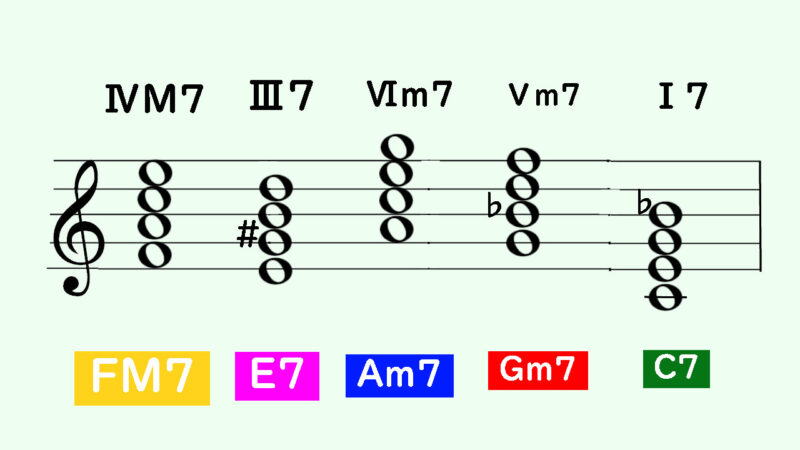 ⅣM7 – Ⅲ7 – Ⅵm7 – Ⅴm7 – Ⅰ7